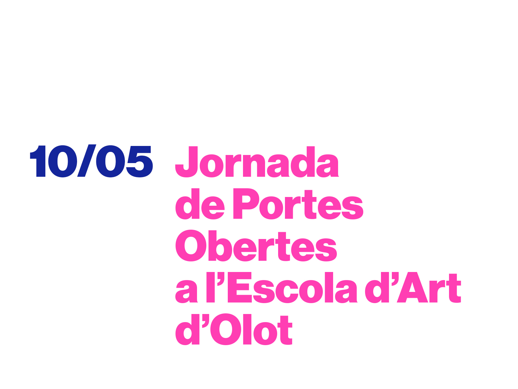 La primera Jornada de Portes Obertes tindrà lloc el dissabte, 10 de maig, de 10 a 13 h. En aquestes podreu rebre informació de tots els estudis impartits en el nostre centre: Batxillerat d’Arts, CFAM de Revestiments Murals i APGI, CFAS de Gràfica Publicitària, Decoració, Fotografia i Audiovisuals, Il·lustració, Producció de Personatge Escultòric i Grau en Disseny (ESDAPC).