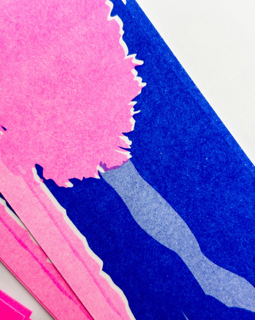 La producció final s’ha realitzat mitjançant la tècnica de la risografia, amb impressió feta íntegrament a la mateixa Escola. Aquest sistema d’impressió ha permès a l’alumnat experimentar amb processos artesanals i sostenibles, tot explorant les possibilitats expressives del color, la superposició de tintes i les textures pròpies d’aquesta tècnica.