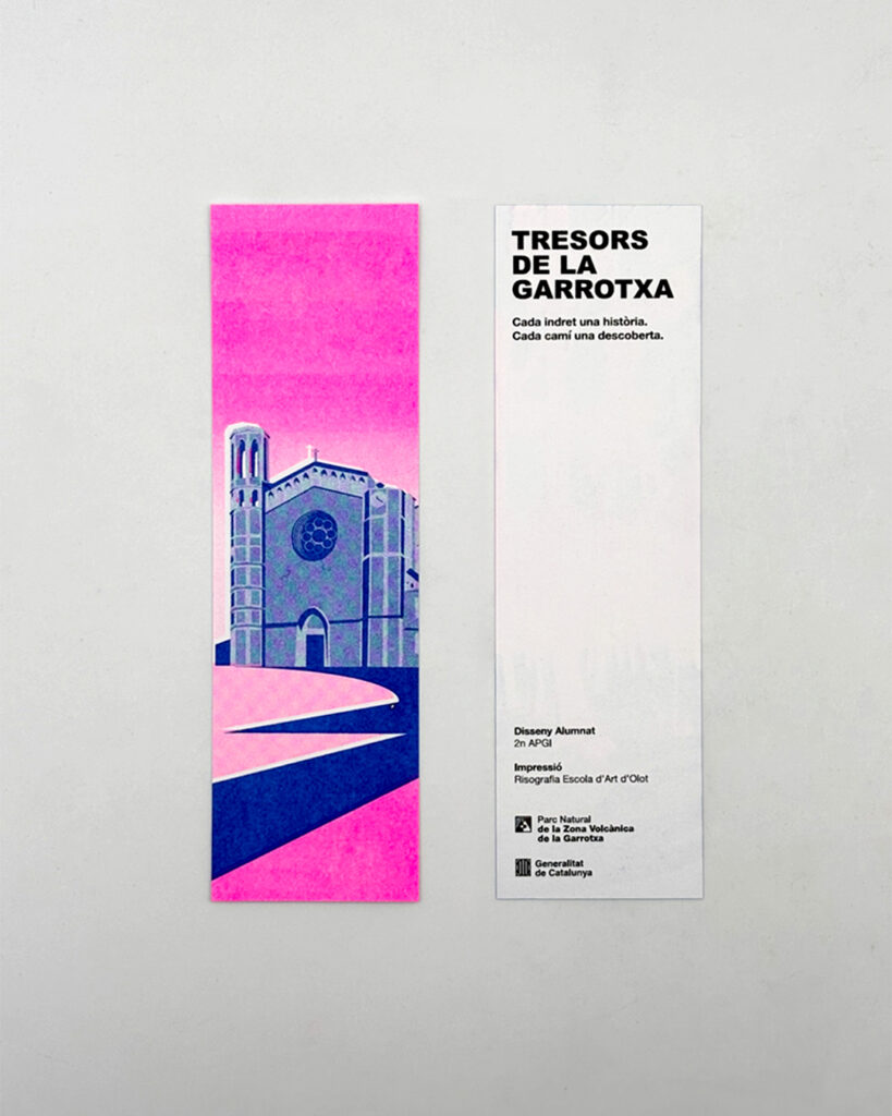 Amb l’alumnat de 2n d’APGI de l’Escola d’Art d’Olot s’ha dut a terme un projecte col·laboratiu centrat en el disseny i la producció de sis models de punts de llibre inspirats en diferents indrets emblemàtics del Parc Natural de la Zona Volcànica de la Garrotxa. L’activitat ha permès treballar el disseny gràfic com a eina de comunicació cultural i de posada en valor del territori.