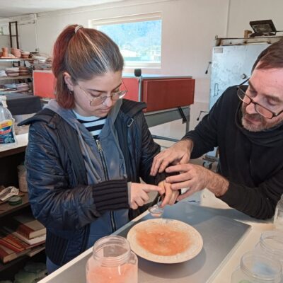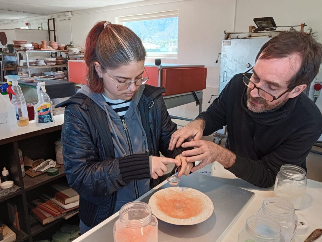 El dilluns 17 de febrer els i les alumnes de 2n del CFAS de Reproducció de Personatge Escultòric van poder gaudir d’una jornada al taller de l’artista Jordi Traveria qui els va introduir en el fascinant món de l’art del vidre.